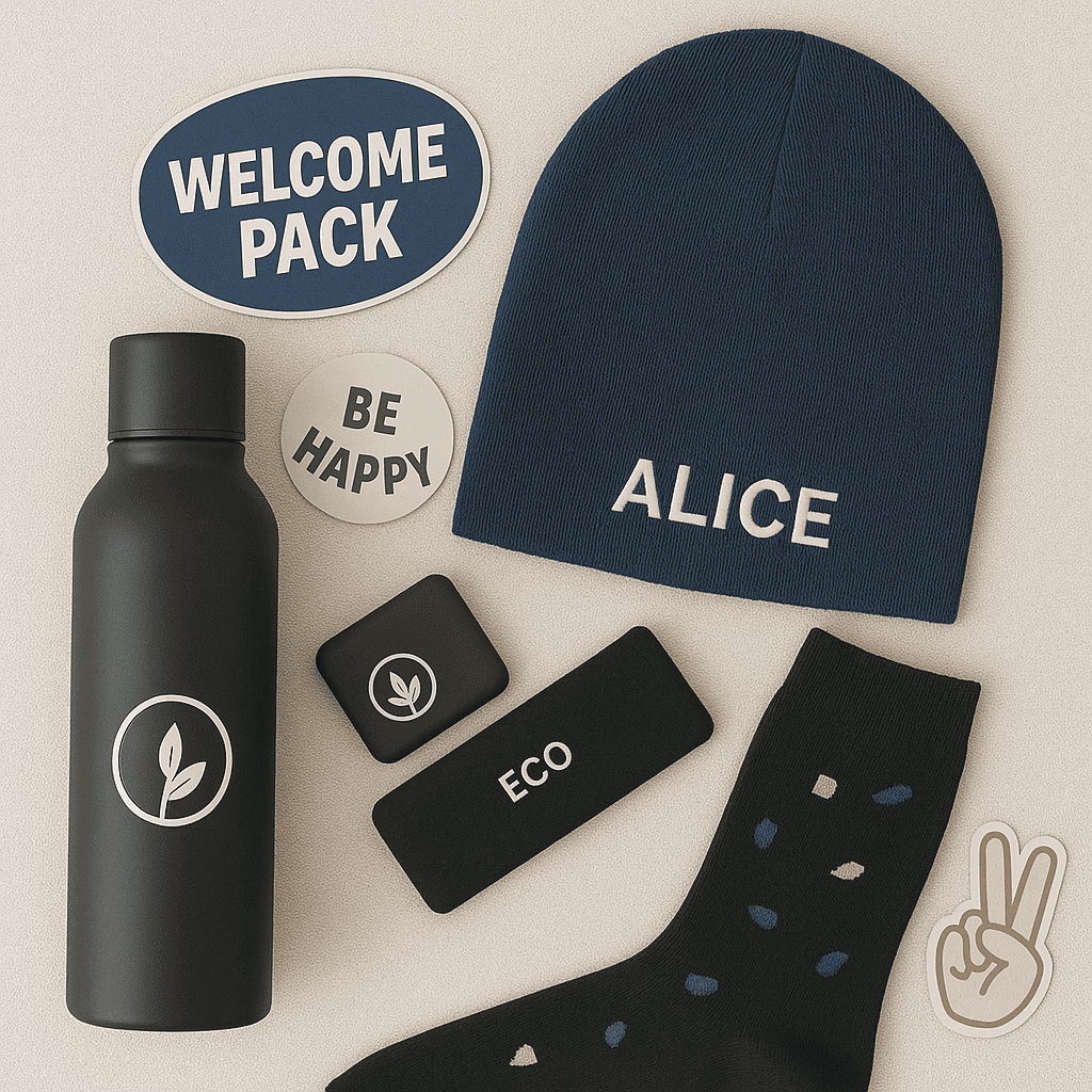 🔹 Welcome pack onboarding : un bonnet avec le prénom brodé + un mug + une petite carte → combo gagnant pour accueillir les nouveaux avec chaleur !