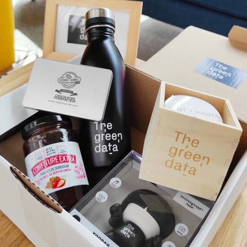 Un coffret mixant tech, food et bien-être : gourde personnalisée, box bois, enceinte bluetooth, confiture artisanale, carte de bienvenue… Un mix généreux qui crée une vraie expérience sensorielle.
